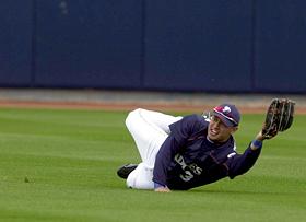 Shane Victorino, shown robbing Seattle's Mark McLemore of a hit last month, is believed to be the first Maui native in the majors.